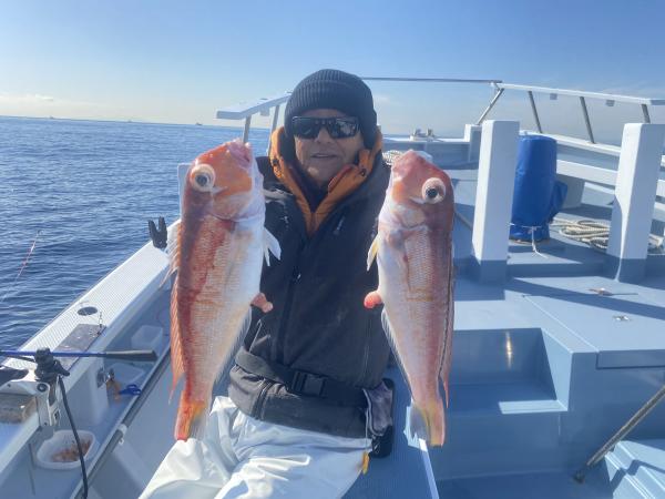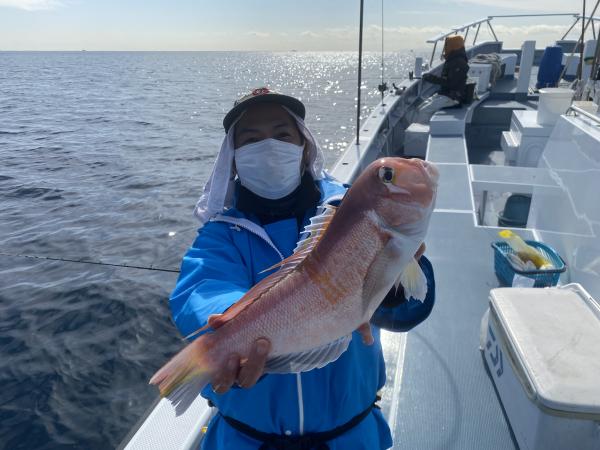 本日もご乗船有難う御座いました。今日は、朝から潮流れ適度に有り、早朝からシロアマゲットでき45cm・42cm・他に2尾上がりました!!その後、アカアマ狙いに切り替えても、アカアマ単発で顔見れり、見れなかったりで、アカアマ・シロアマで最長45cm頭にトップ4尾で4尾2名様・続いて3尾……0尾1名様出てしまいました…。アカアマも30cm級主体で30cm以下は船中2尾のみと良型主体でした!!アマダイ他ヒメコダイ・ムシガレイ・タコ・ハタ・イトヨリ混じりました。明日より連休となります。次回出船7日(土)のご予約お問い合わせ・ネットご予約お待ちしております。