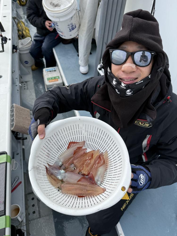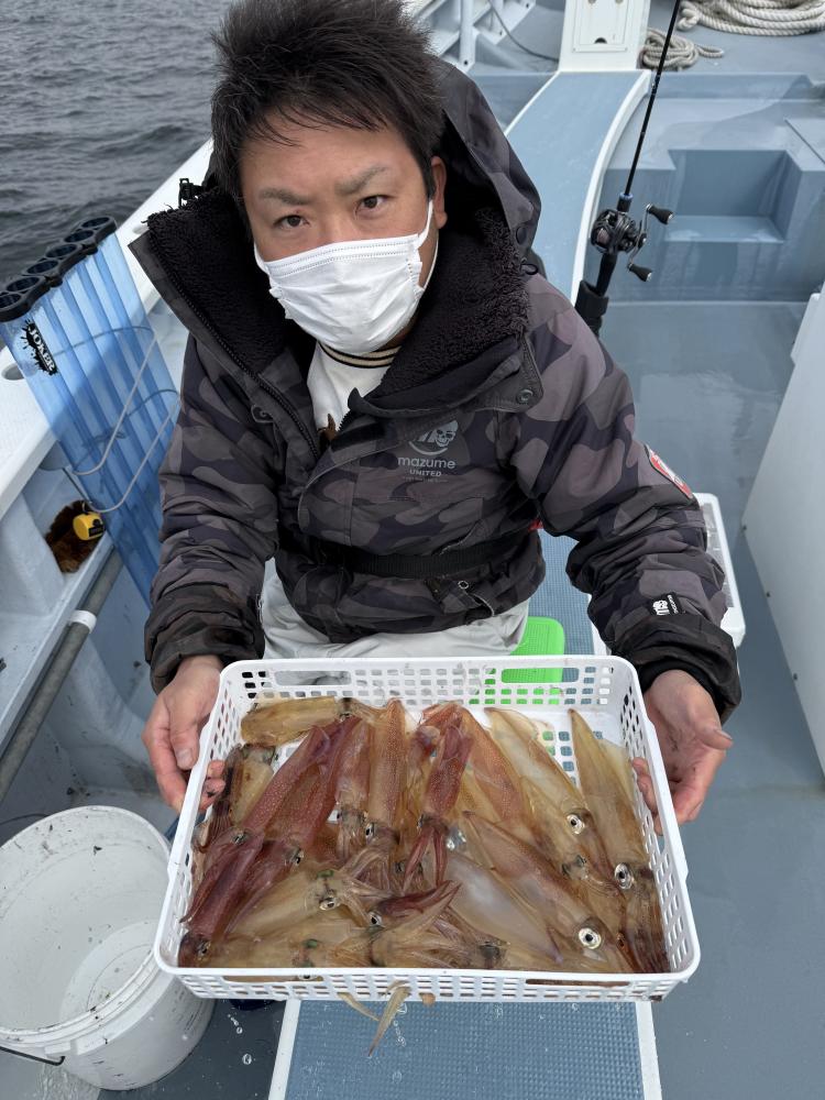 今日は皆様釣果は平均して、ムギイカ少々混じりに良型も多く、トップ19杯に、17杯や、15杯、13杯など、皆様お土産確保してくれました。