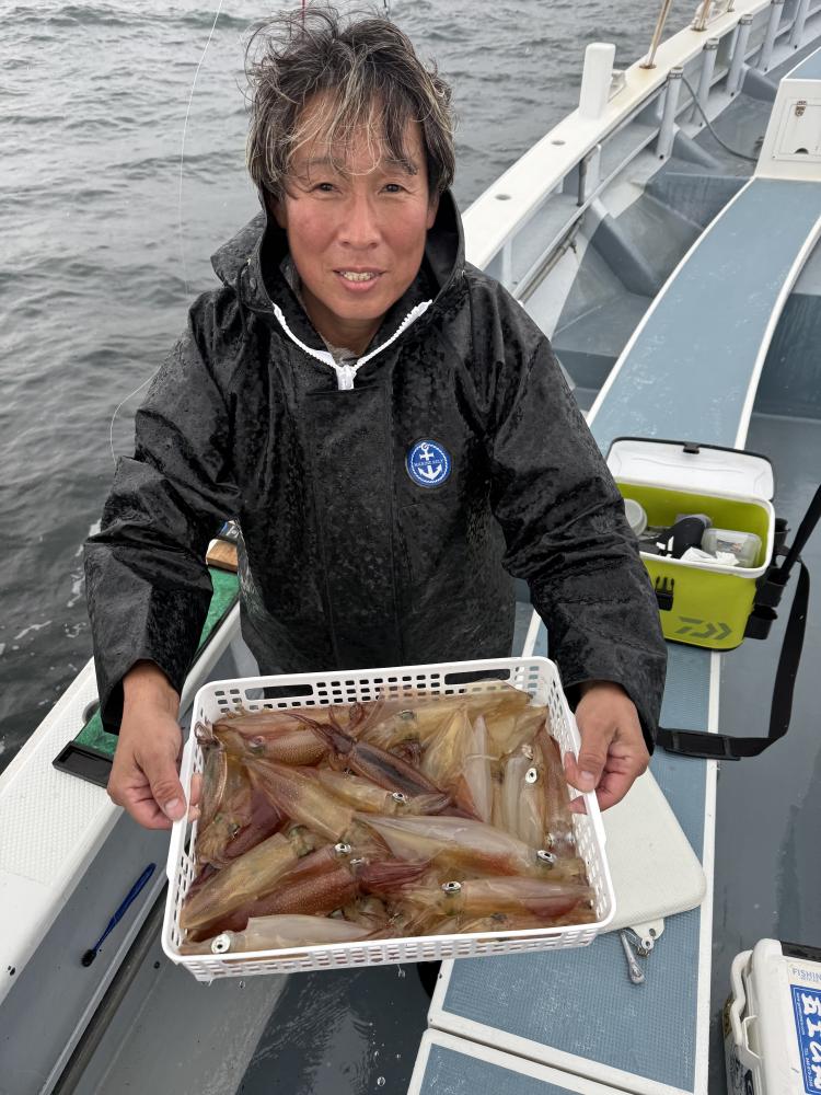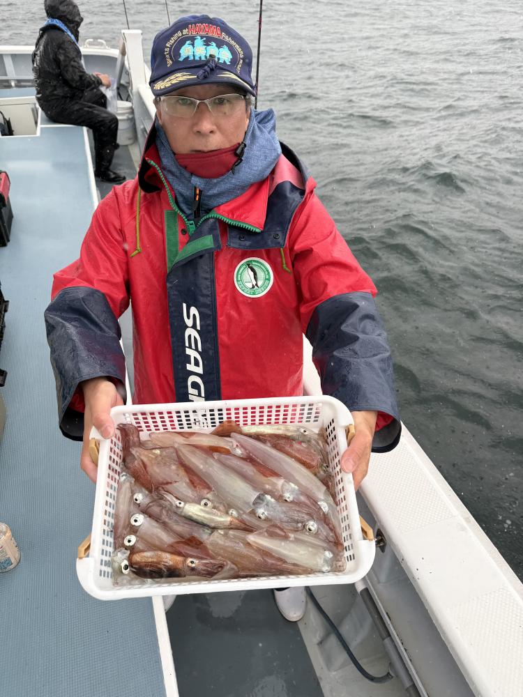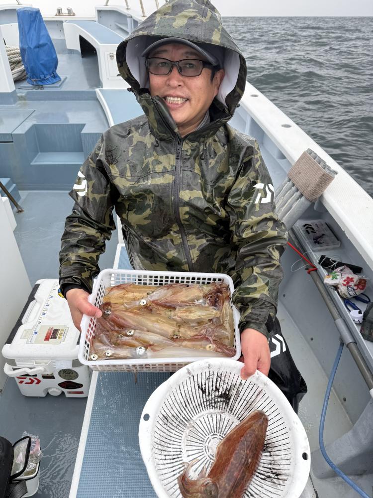 ヤリイカ、ムギイカ混じりで、トップのお客様40杯に38杯、23杯と続き、10杯以上のお客様などもいました。