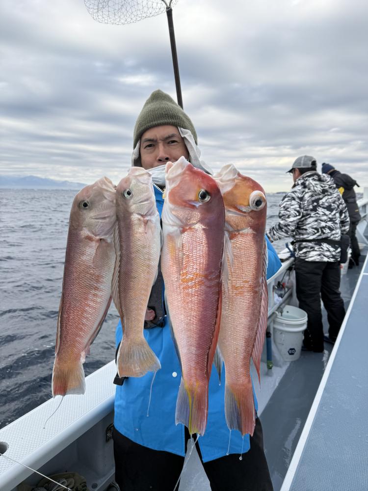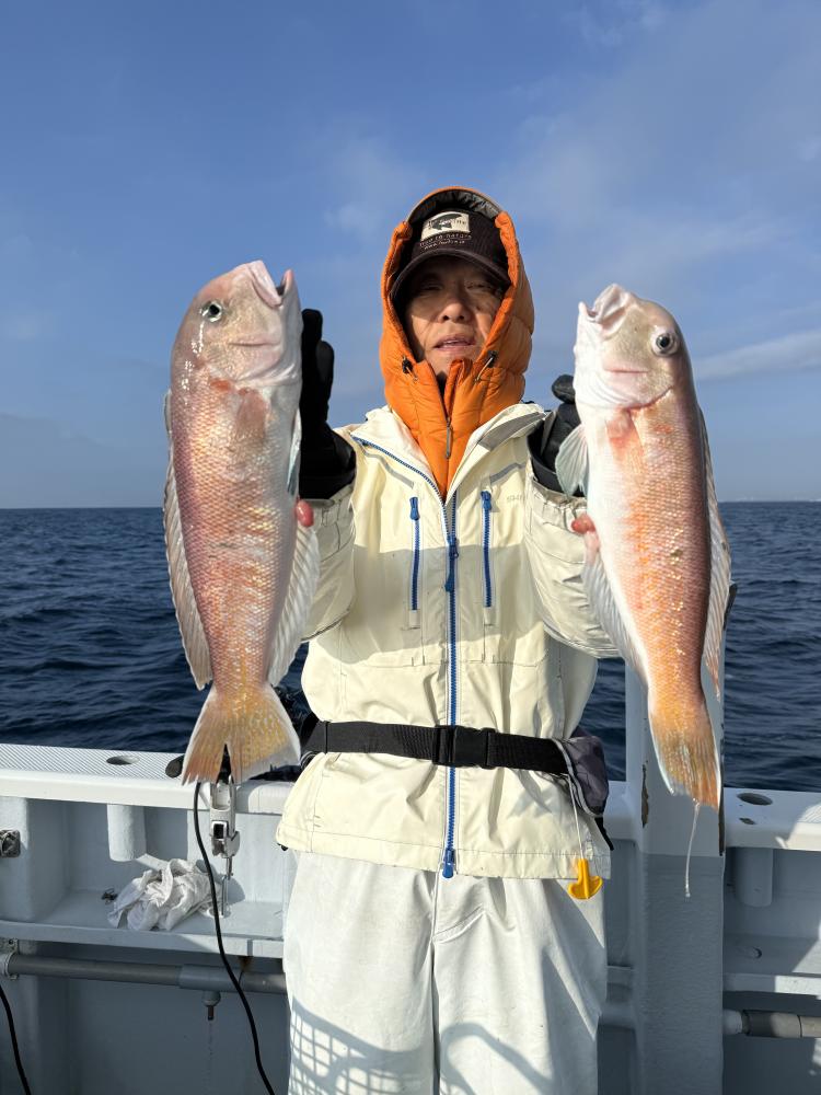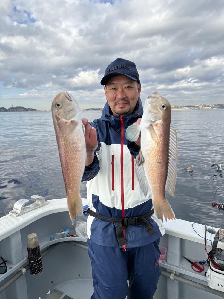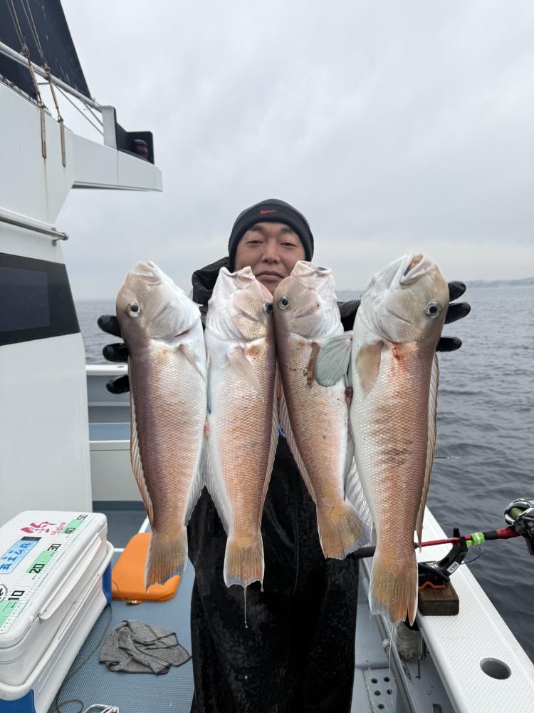 今日はイトヨリなどのアタリがポツポツとありながら、シロアマ34〜41㎝計5尾があがりお一人様4尾と好調に釣りあげたお客様がいました!