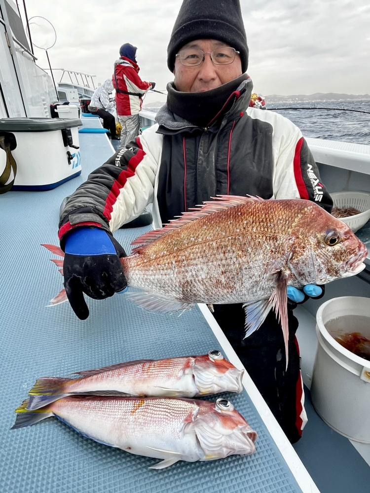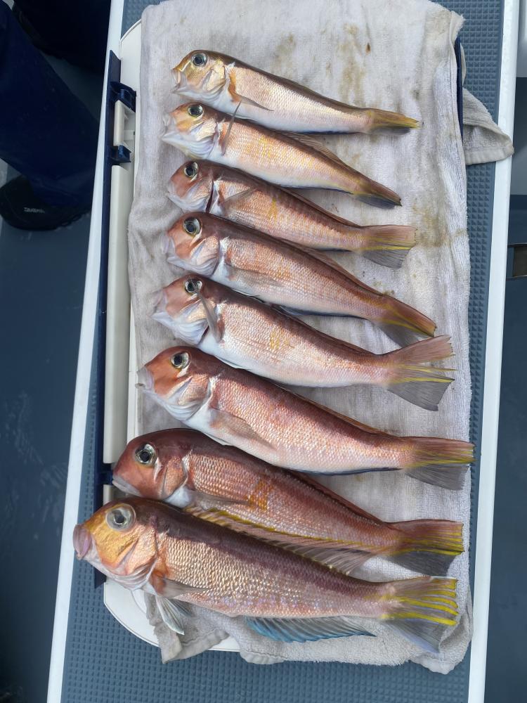 本日も、ご乗船有難う御座いました。今日も、朝から潮流れあまりなく…。。。浅場のポイントから顔見れても、あとが続かない…。。。それでも、各ポイントゲットしていき、アマダイトップ6尾レンタルでの挑戦者様・続いて4尾…3尾2名様……お一人様ゲットならず…。。。本日乗船者様の半数以上がレンタルタックルでの挑戦者様でしたが、皆様頑張ってくれましたね!!有難う御座います。アマダイ他イトヨリ・カンコ・ハナダイ・ヒメコダイ・カサゴ・オニカサゴ・ムシガレイ・カナガシラ混じりました。明日も出船確定しております。皆様からのご予約お問い合わせ・ネットご予約お待ちしております。