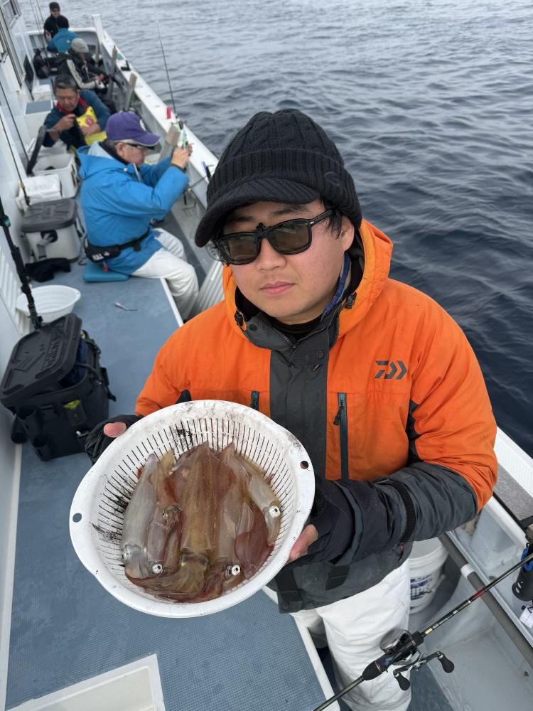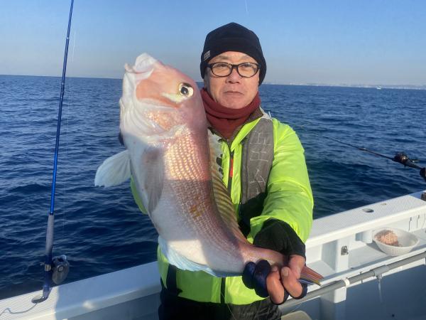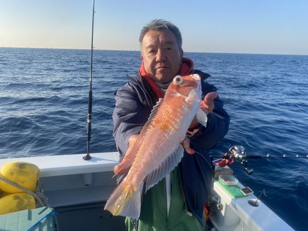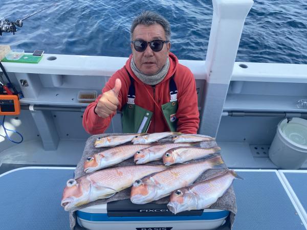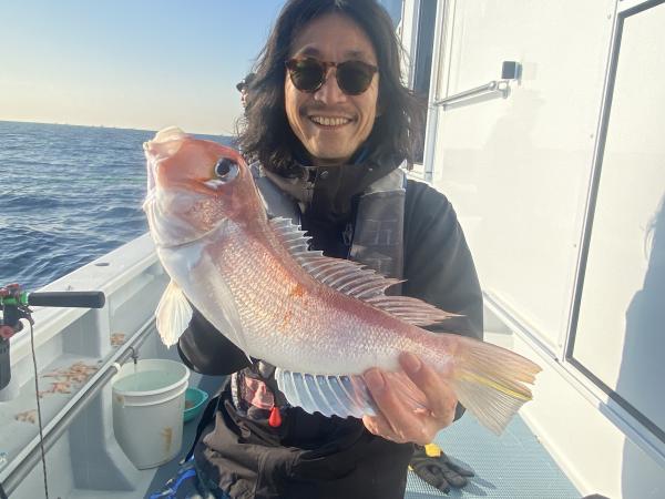 本日も、ご乗船有難う御座いました。今日は、朝のうちシロアマ狙うも不発…。その後、アカアマ狙うも顔見れてもあとに続かなく…。。。後半ポイント変えてからアカアマ・キアマでポツポツゲットでき、アマダイ最長38cm頭にレギュラーサイズ主体にらトップ11尾と数伸びました!!トップのお客様は後半のポイント移動する前までzero尾でしたが!?後半連釣してくれてお見事でした!!他のお客様も数伸ばしてくれて2番手8尾・続いて6尾・5尾2名様……1尾と皆様全員様ゲットできました!!大型は明日狙っちゃいましょう!!明日もお座席まだまだ空席多数御座います。皆様からのご予約お問い合わせ・ネットご予約お待ちしております。