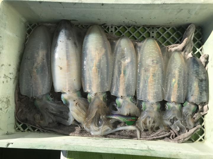 本日もご乗船有難う御座いました。今日は、朝からアオリ順調にゲットできトップ8杯・2番手7杯2名様で皆様全員様ゲットでき順調でした!!今日は、アオリ連チャンやダブル・トリプル有りなノリで良かったでした!スミイカも混じりました。明日は定休日となります。明後日6日(金)も出船確定しております!皆様からのご予約お問い合わせをお待ちしております!