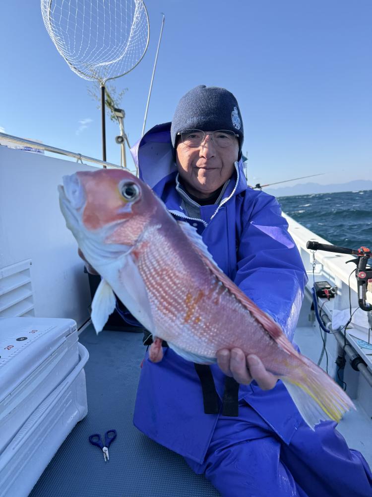 今日も最初は潮の流れがなくアマダイは顔は見れても単発で終わってしまう流しが多かったんですが、色々なポイントを探っていくと、ヒット連発してくるようなアツい流しがあり、44㎝に42㎝が3尾と良型もあがりトップ6尾のお客様が2名様に続いて5尾など釣りあげたお客様もいてお一人様残念ながら型見れずでした。