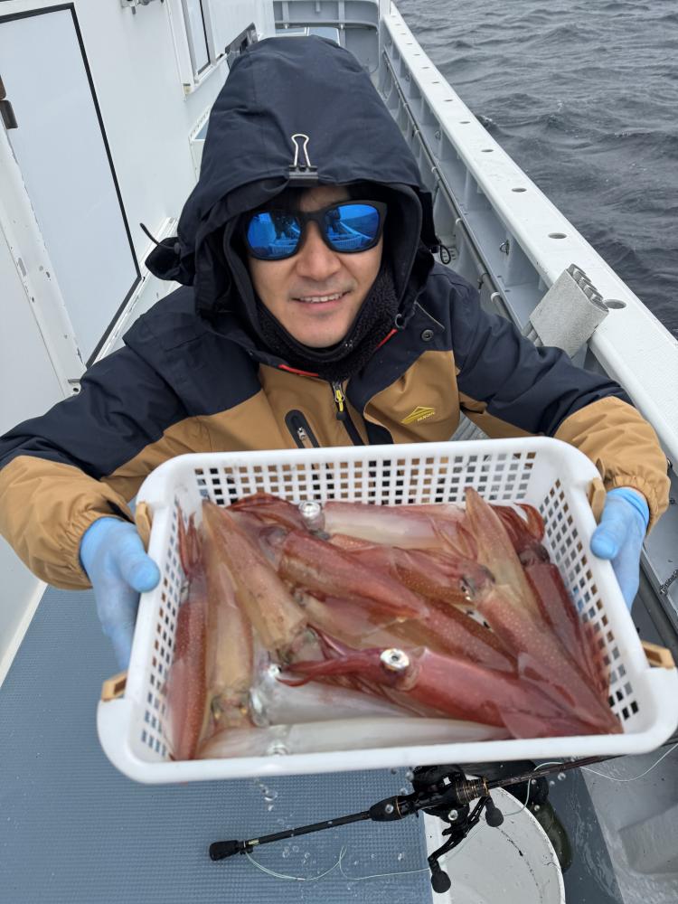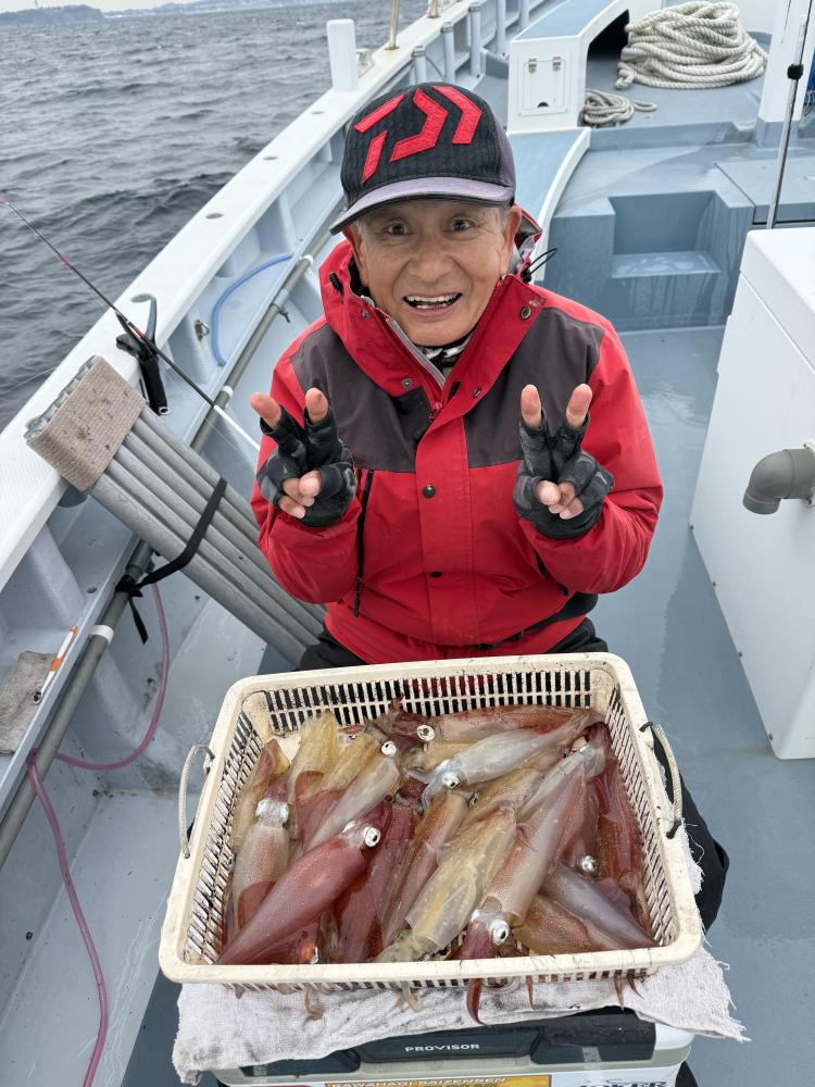 カメギ根から探っていきましたが、海底の汚れや魚反応が出っぱなしで、イカの反応との判別がつけれず大苦戦で、後半は茅ヶ崎沖周辺に行かせてもらいました。